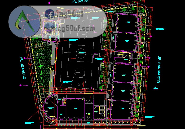 مخطط مشروع ملعب كرة قدم الصالات اوتوكاد Dwg