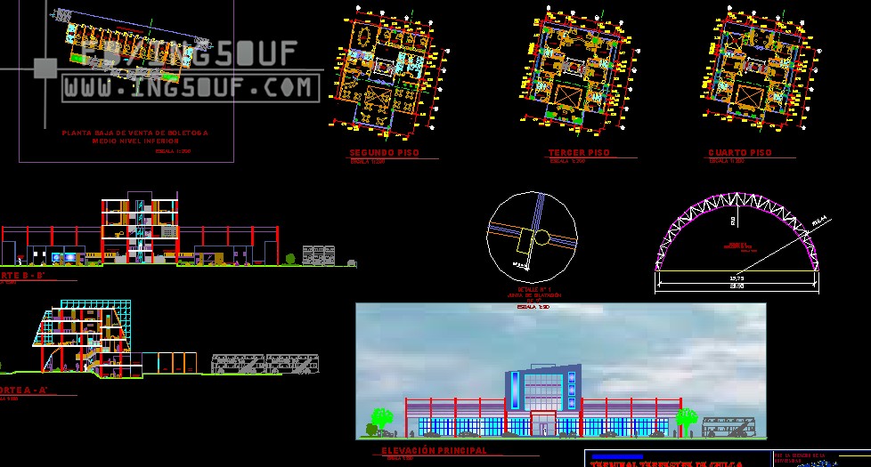 مخطط مشروع مصنع مع مكاتب ادارية هياكل معدنية اوتوكاد Dwg