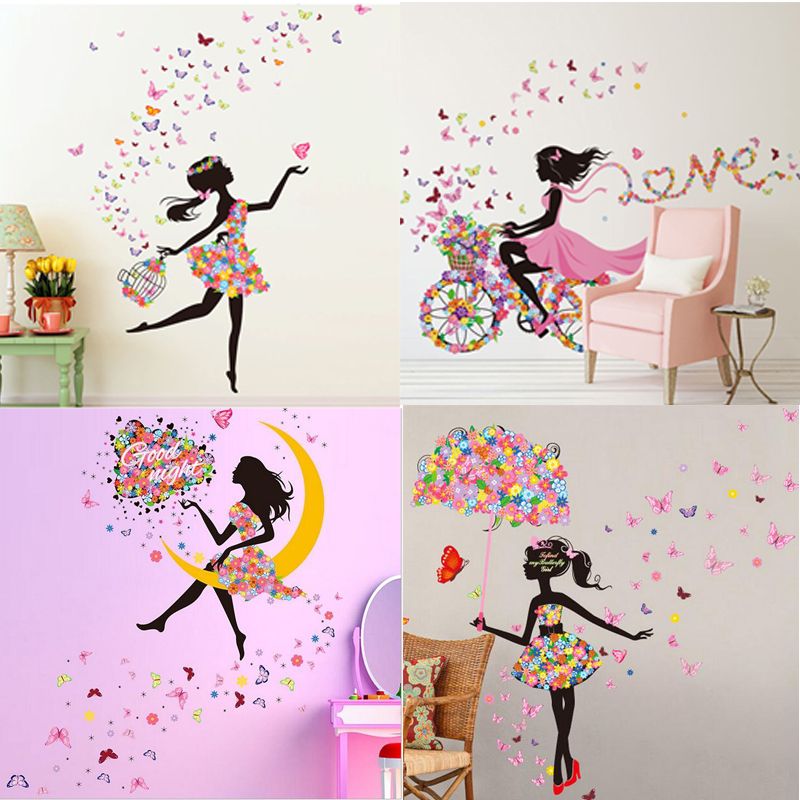 فتاة جميلة الجنية فراشة الزهور ملصقات الحائط خلفية الممر يزين غرفة الجلوس غرفة النوم يمكن إزالة ملصقات Pvc 2021 من Angehome 14 98ر س موبايل Dhgate