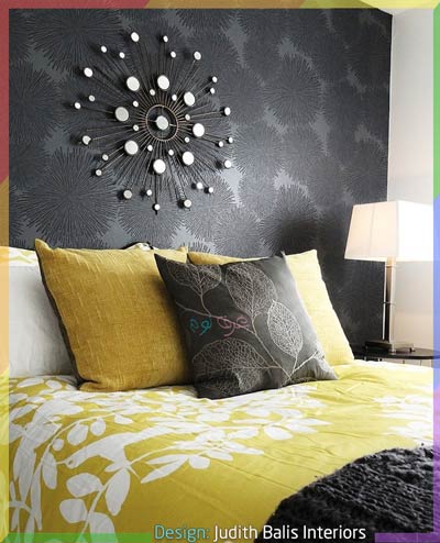 اشكال ورق جدران غرف نوم رمادي و اصفر الراقية
