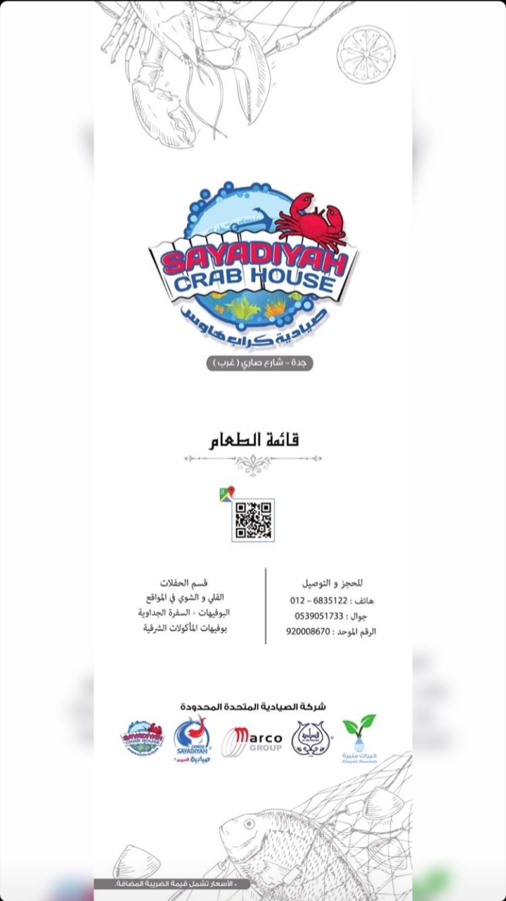 قائمة طعام منيو مطعم صيادية كراب هاوس