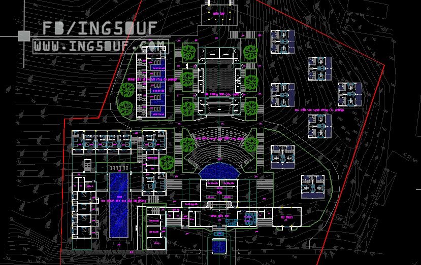 مشروع منتجع سياحي جبلي Resort Music اوتوكاد Dwg
