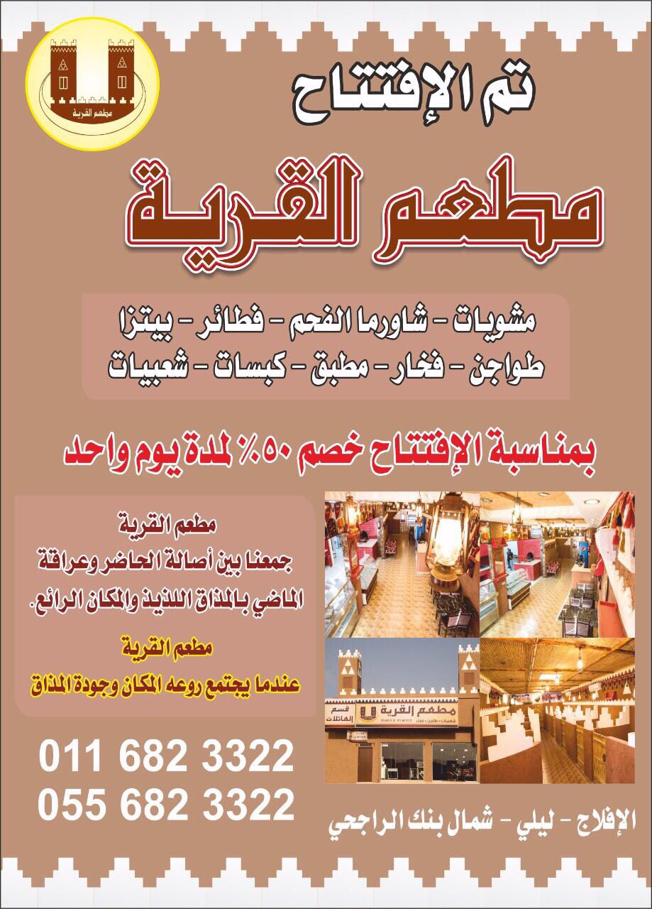 طارق العجالين Sur Twitter بشرى لأهل الأفلاج تم إفتتاح اول مطعم تراثي في محافظه الافلاج بمناسبة الإفتتاح خصم 50 لمده يوم واحد الأفلاج