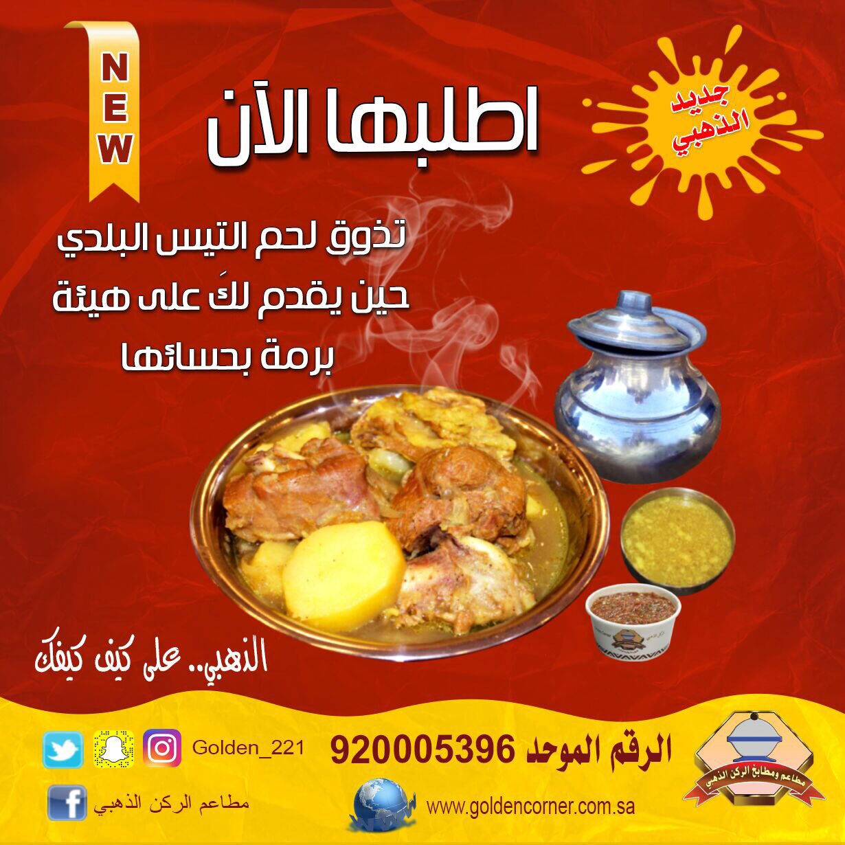 مطاعم الركن الذهبي On Twitter برمة لحم تيس بلدي على كيف كيفك السعودية الدمام الخبر مطاعم الشرقية تسويق الشرقية الذهبي على كيف كيفك الرقم الموحد 920005396 Https T Co Fqzcpn1qkk