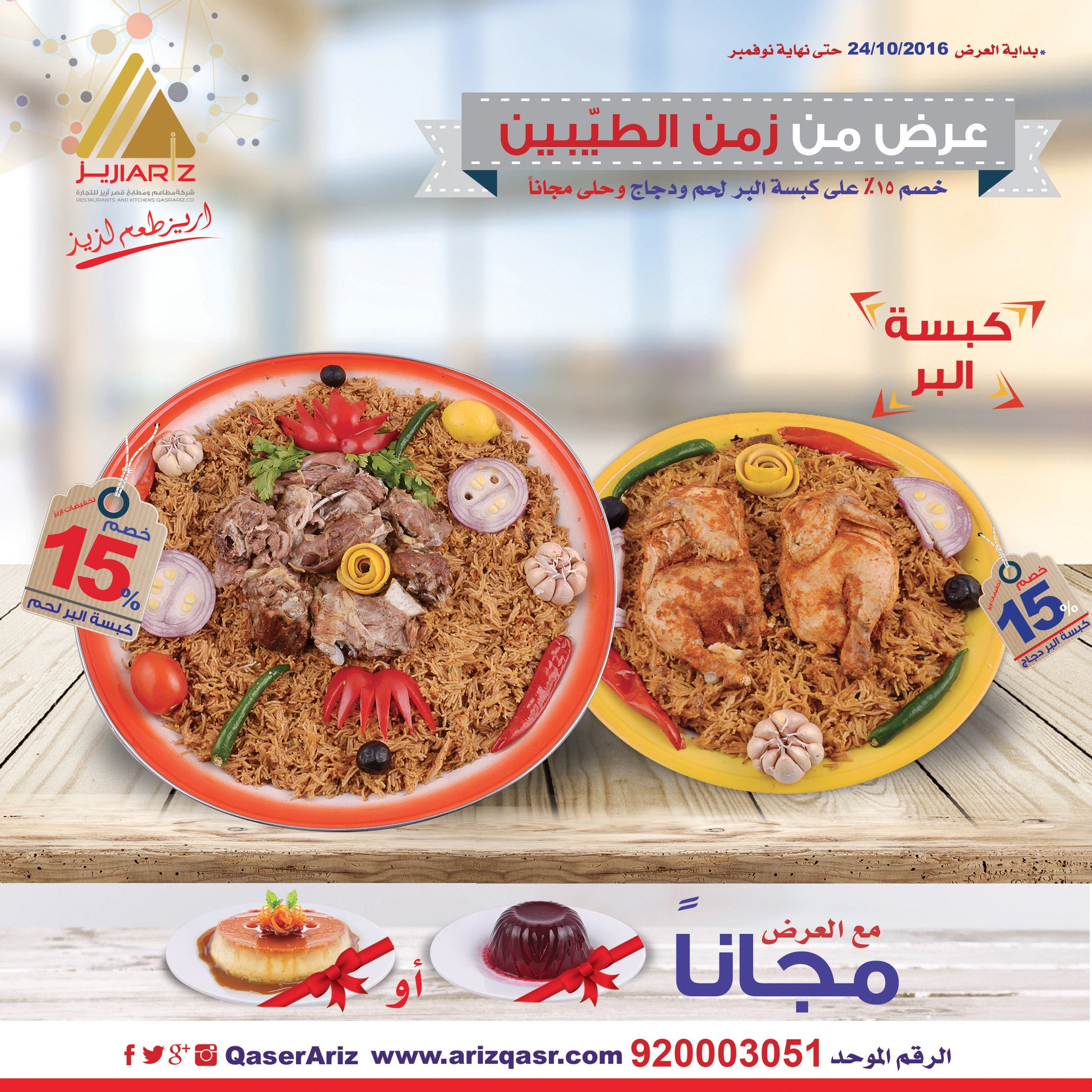 مطاعم اريز على تويتر عرض من زمن الطي بين للحجوزات والتوصيل الرقم الموحد 920003051 فرع اليرمـــوك 0538888493فرع المـونسية 0556662658 فرع المرسلات 0538972222 Https T Co Ybtvpo89tm