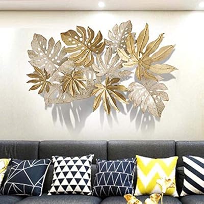 لوحة فنية جدارية فنية جدارية لديكور معدني على شكل أوراق شجر ذهبية ديكور حائط فني على شكل زهور مجوفة لديكور المنزل 67 سم 109 9 سم Amazon Ae