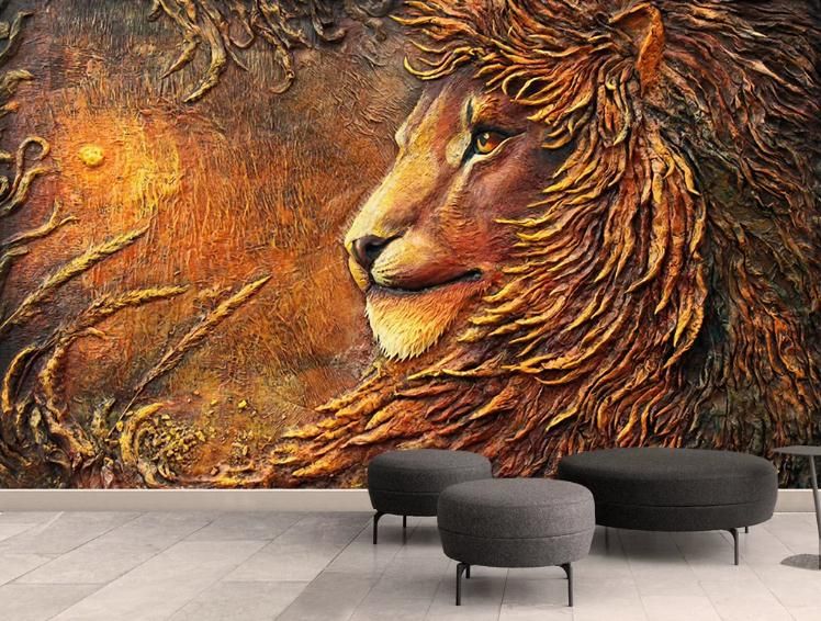 الأصلي تنقش الأسد الذهبي خلفيات صور لتزيين الجدران 3d غرفة المعيشة غرفة نوم محل بار مقهى الجدران جداريات لفة بابيل دي Parede 2021 من Yyyy2015 48 03ر س موبايل Dhgate